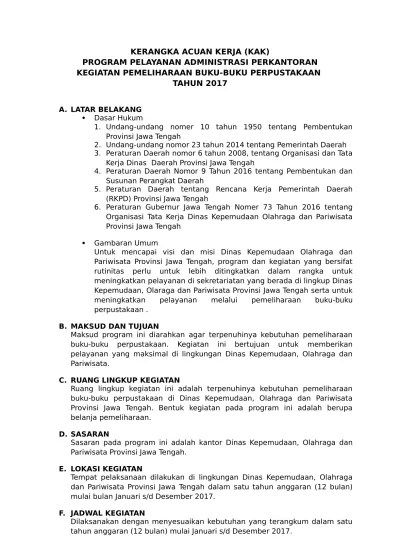 Contoh Kerangka Acuan Kerja Kegiatan Pelatihan / Kerangka Acuan Kerja Kak Contoh Format Kerangka Acuan Kerja Pengadaan Barang Kerangka Acuan : Secara umum kegiatan pelatihan ini bertujuan untuk meningkatkan kualitas menterjemahkan menggunakan bahasa inggris bagi mahasiswa institut agama islam.. Daftar nama calon fasilitator peserta pelatihan dasar dan penyusunan tor pelaksanaan pelatihan dasar fasilitator.,. • mengenal kerangka acuan kerja (kak) dan ragamnya;. Secara umum kegiatan pelatihan ini bertujuan untuk meningkatkan kualitas berbicara dan presentasi dengan menggunakan bahasa inggris bagi dosen. Kerangka acuan kerja/term of reference. Kegiatan pelatihan keterampilan berusaha bagi keluarga miskin.